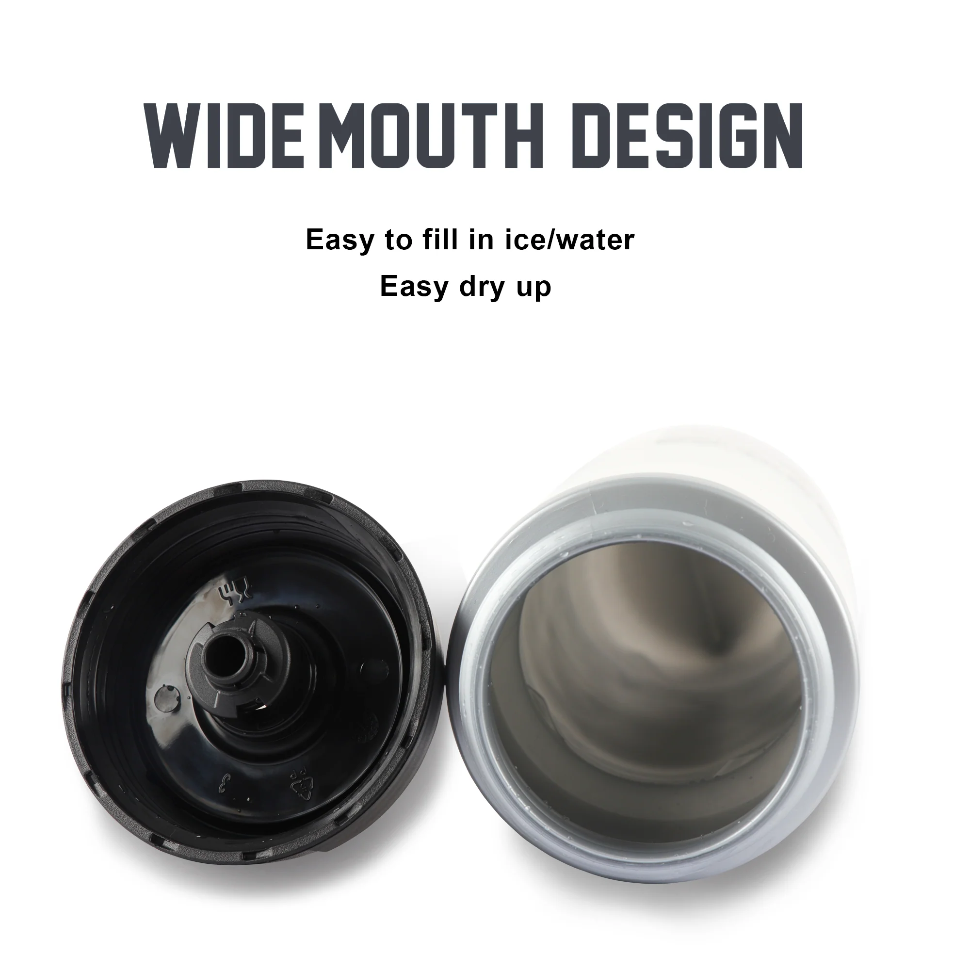 - Secure lockout on cap ensures leak-free transport and shaking and mixing of powdered drinks