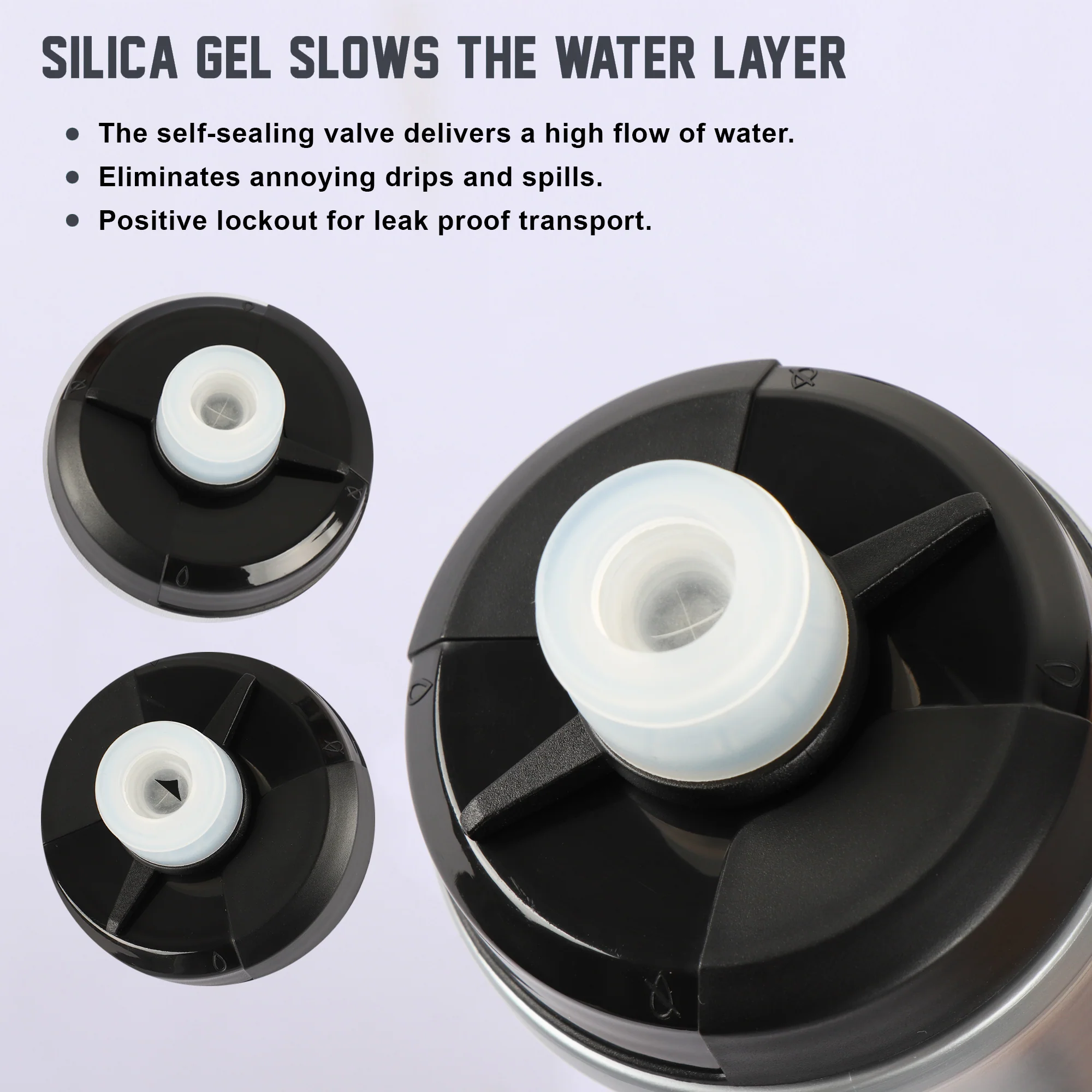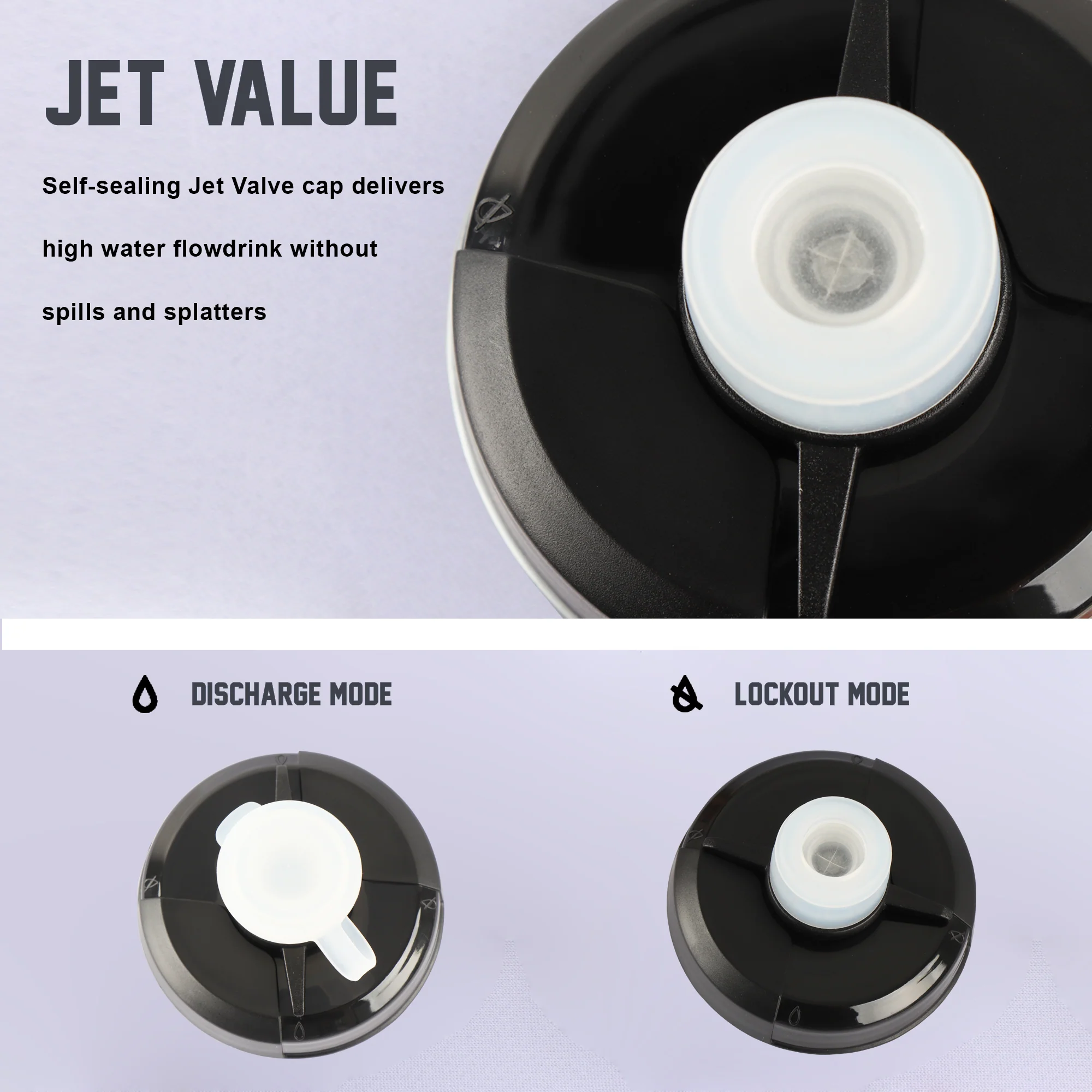 - Self-sealing Jet Valve cap delivers high water flow; drink with ease without spills and splatters